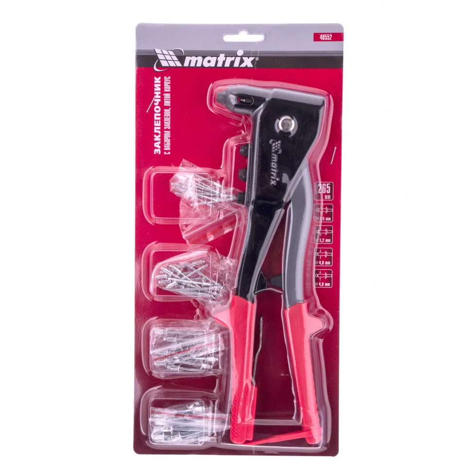 Заклепочник литой, 260 мм, с набором заклепок, заклепки 2.4-3.2-4.0-4.8 мм Matrix 40552