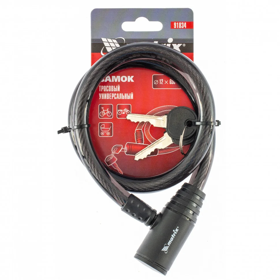 Замок тросовый универсальный, 12 х 650 мм Matrix 91834