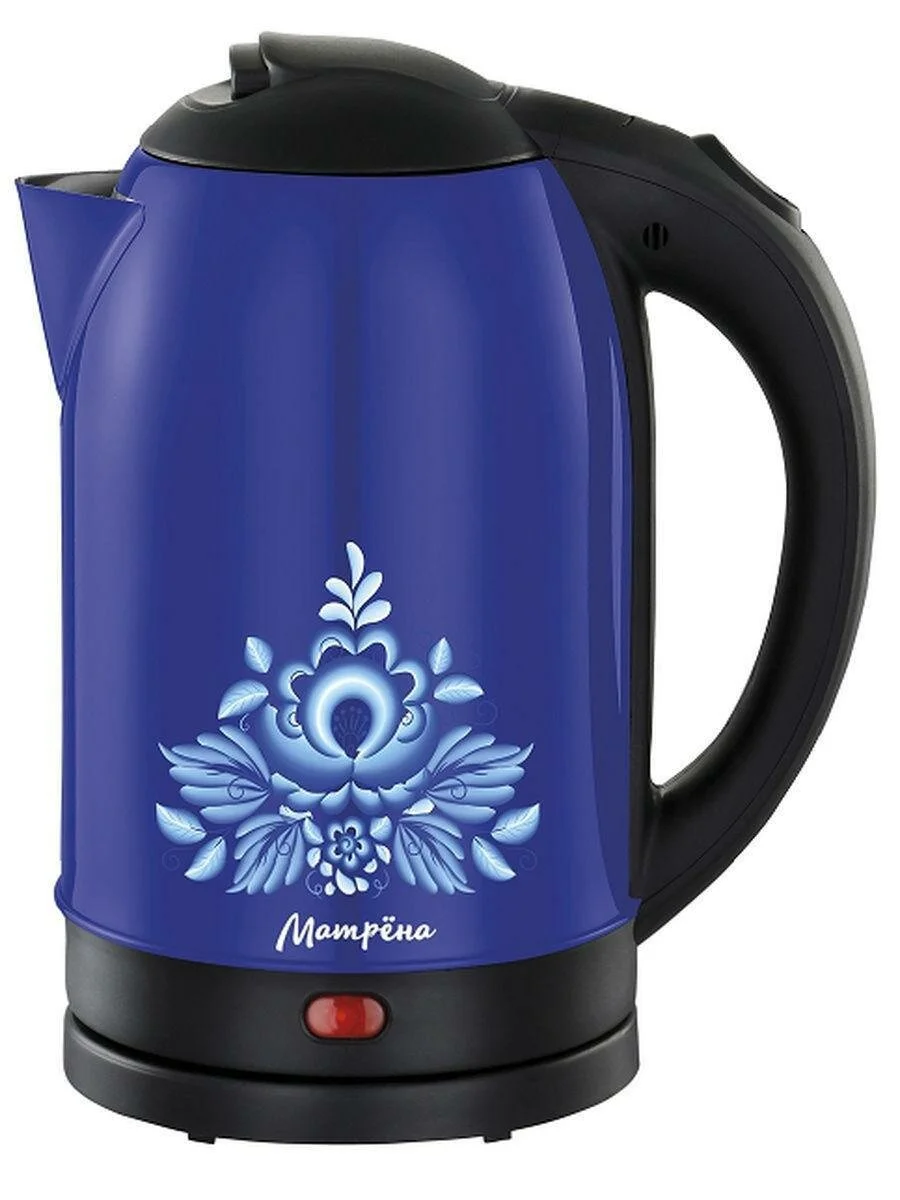 Электрический чайник «Матрёна» MA-005 объёмом 2 литра с рисунком «Гжель» предназначен для использования в офисе или дома.