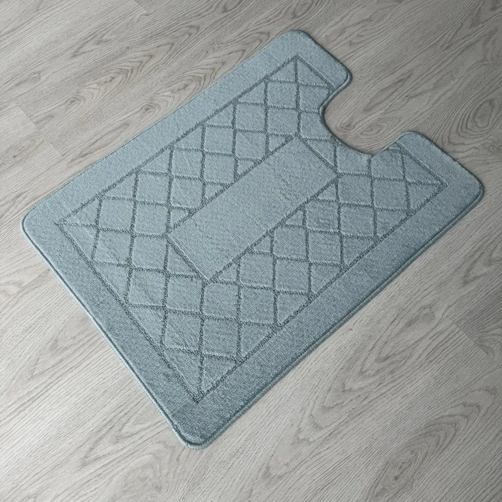 Практичный ворс из полипропилена имеет среднюю высоту 5-9 мм. Он неприхотлив в быту и не доставит хлопот в уходе. Рельефный рисунок добавляет объёмности. В коллекции представлен широкий выбор комплектов для ванной комнаты и туалета.