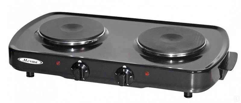 Электроплитка Мечта 212Ч – настоящая мечта экономной и практичной домохозяйки. Она занимает минимум места на кухне, но при этом очень надежна и радует своей производительностью. На ее поверхности находится всего две чугунные конфорки, мощность каждой составляет по 1000 Вт. Такого набора хватит для того, чтобы готовить пищу для небольшой семьи, использовать электроплитку на даче. Также она понравится тем людям, которые готовят очень редко и не хотят занимать место на небольшой кухне громоздкой техникой. Актуальной она будет в тех домах и квартирах, где отсутствует подключение к газовой магистрали. Настольная плита Мечта 212Ч имеет прочное и долговечное стеклоэмалевое покрытие. Его очень легко чистить от загрязнений. На передний торец вынесены два поворотных переключателя, которые позволяют плавно выбирать желаемую мощность для каждой из конфорок. Также на корпусе присутствуют два индикатора – по одному для каждой работающей конфорки. Вес электроплитки составляет 4,5 кг, что позволяет ее легко транспортировать по мере необходимости или переставлять в пределах одной кухни. Удобно, что плитка не скользит по поверхности и не создает травмоопасных ситуаций благодаря своим прорезиненным ножкам.