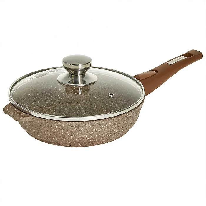Сковорода 22 см АП Гранит brown с022806 со съемной ручкой и стеклянной крышкой