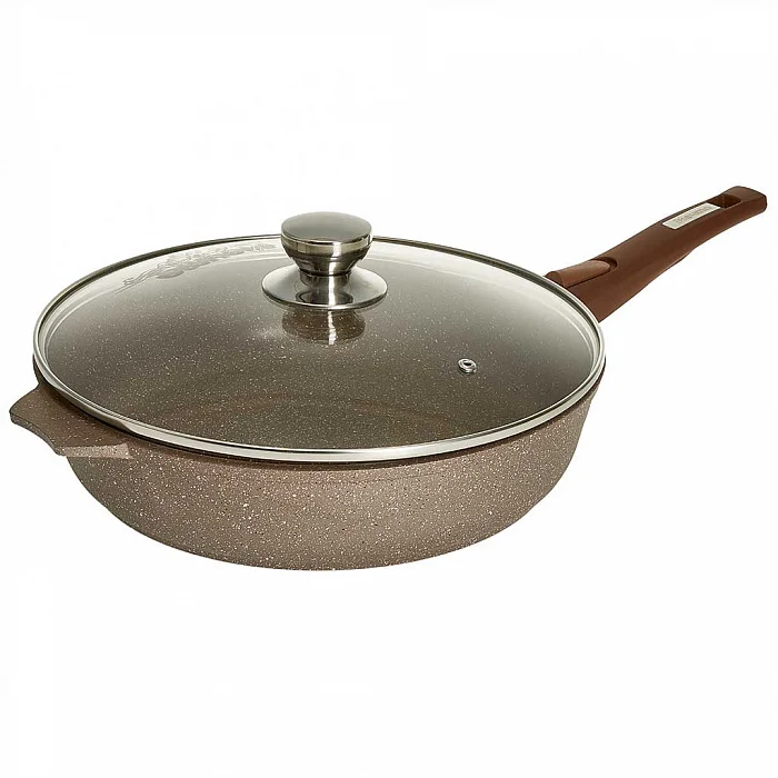 Сковорода 28 см АП Гранит brown с028806 со съемной ручкой и стеклянной крышкой