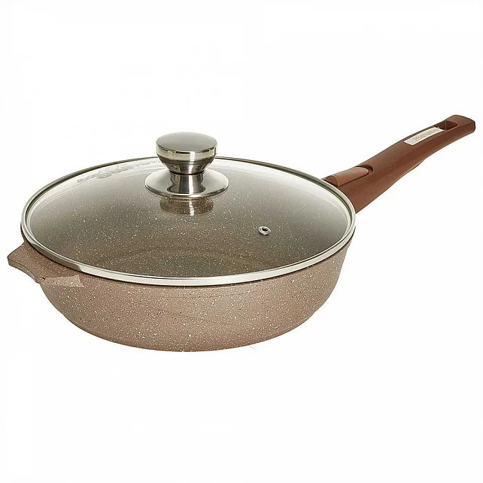 Сковорода 30 см АП Гранит brown с030806 со съемной ручкой и стеклянной крышкой