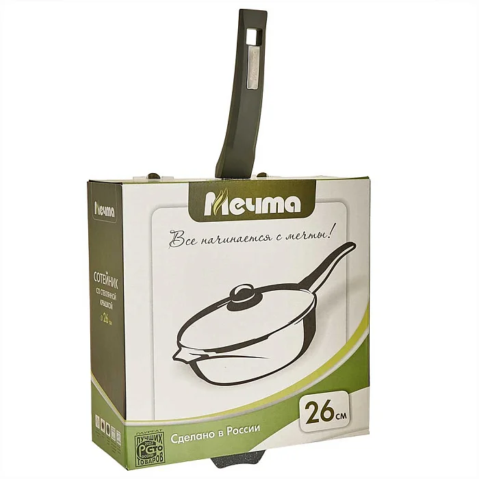 - Сотейник из литого высококачественного пищевого алюминия, с несъемной ручкой и cтекляной крышкой