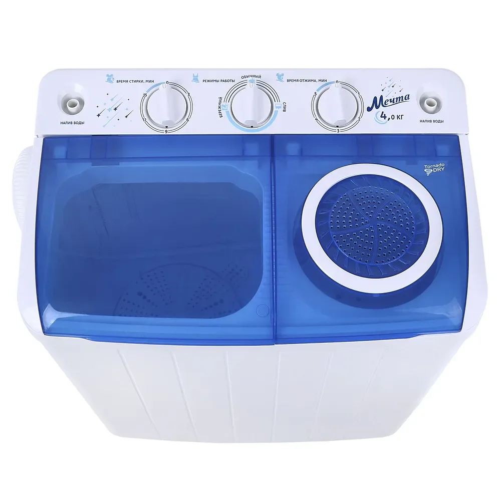 Стиральная машина Мечта WMS T413UPTA01 – компактный мобильный вариант для быстрой повседневной стирки белья. Это машина-полуавтомат с вертикальным типом загрузки, в прибор можно загрузить 4 кг белья. Машина оснащена двумя рабочими программами. Прозрачная крышка позволяет в любой момент отслеживать процесс стирки.