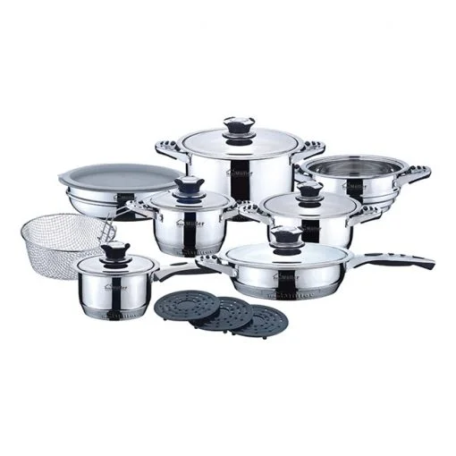 В наборе посуды Нaus Muller HM-1019 Вы приобретаете 4 кастрюли разных объемов, включая ковш, большую сковородку, пароварку, а также такие необходимые в хозяйстве вещи, как дуршлаг, салатница и подставки под горячее.