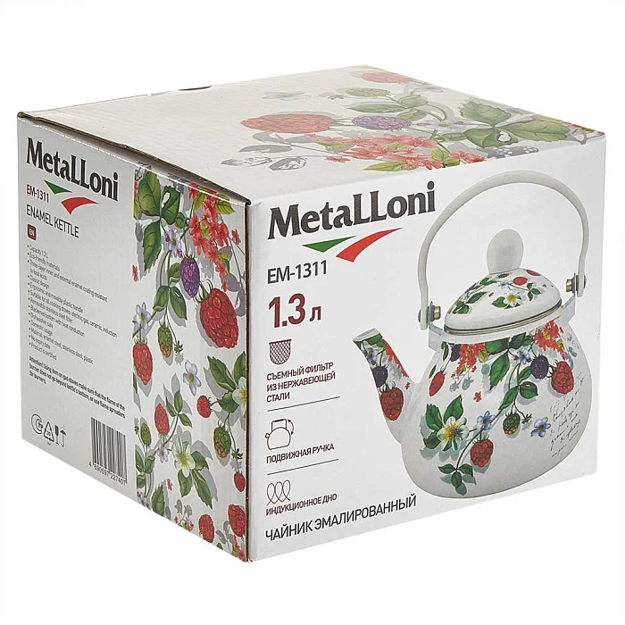 Чайник 1,3 л эмалированный с фильтром из нержавеющей стали EM-1311 "Ягоды"