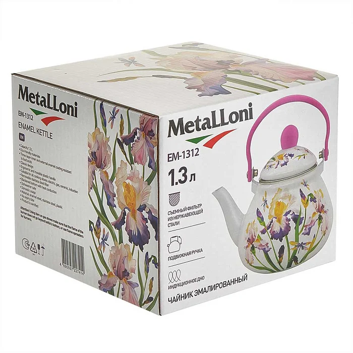 Чайник 1,3 л эмалированный с фильтром из нержавеющей стали EM-1312 "Ирисы"