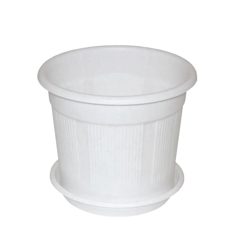 Горшок для цветов выполнен из пластика. Пластик дольше хранит влагу, а значит, растение реже нуждается в поливе, и не пропускает воздух, поэтому корневой системе растения не грозят резкие перепады температур. Пластиковые горшки имеют малый вес, поэтому их с легкостью можно переносить с места на место, ставить на столики или полки, не беспокоясь о нагрузке. Такие кашпо не царапают и не загрязняют поверхности, на которых стоят. Горшок украшен рельефом и дополнен поддоном для стока воды. Любой, даже самый современный и продуманный интерьер будет незавершенным без растений. Они не только очищают воздух и насыщают его кислородом, но и украшают окружающее пространство.