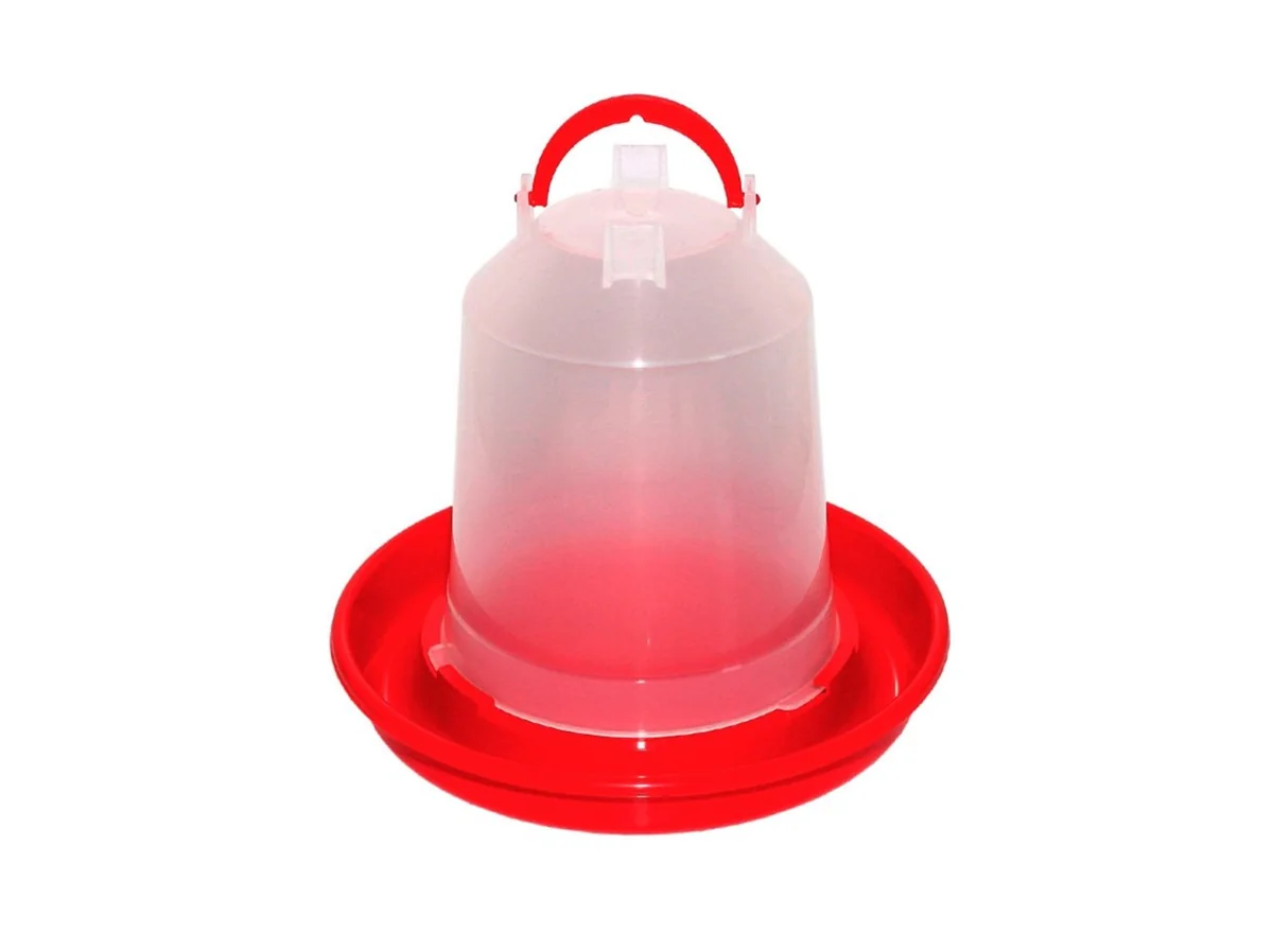 Практичная подвесная поилка, используется при выращивании практически любых видов домашней птицы. Изготовлена поилка из гигиеничного, высококачественного пластика, безопасного и при этом очень прочного. Питьевая вода заливается в емкость, затем сверху крепится тарелка после чего поилка переворачивается. В таком виде ее можно поставить на пол или при желании подвесить за предусмотренное на емкости кольцо. Такую поилку легко отмывать от грязи, поскольку пластик обладает ровной поверхностью. Эту неприхотливую в применении и не менее приятную на вид поилку, Вы сможете использовать в течение длительного времени.