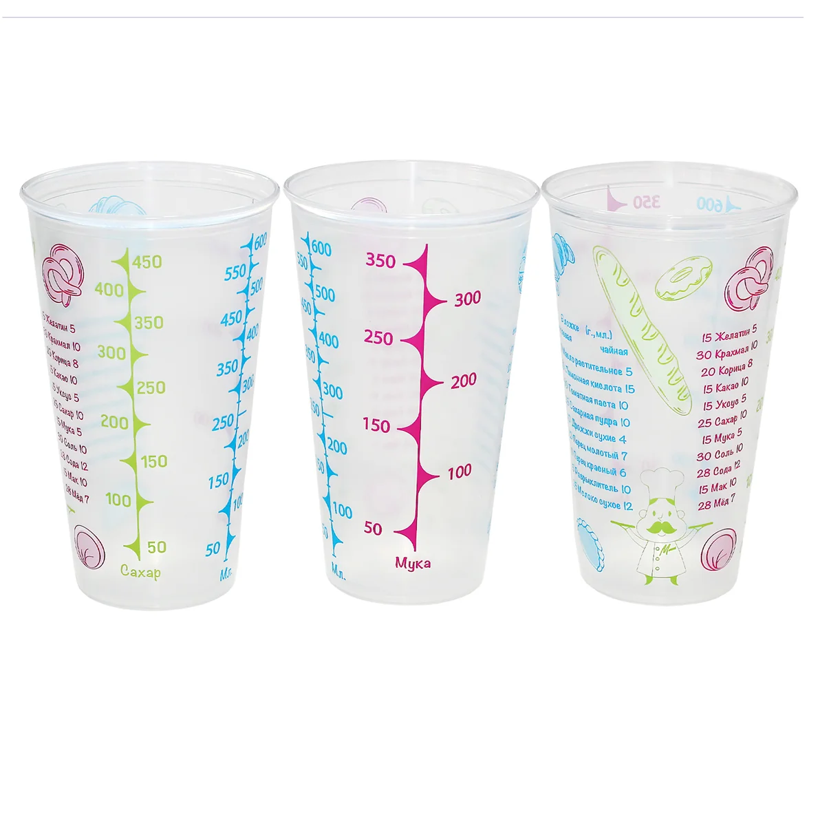 Мерный стакан 0,6 л - необходимый предмет для кухни. Стакан имеет 3 мерные шкалы, легко моется, позволяет отмерить объем жидткости до 600 мл, сахар до 450 гр и муку до 350 гр. С его покупкой у вас отпадет проблема измерять все "на глаз".