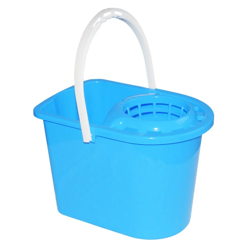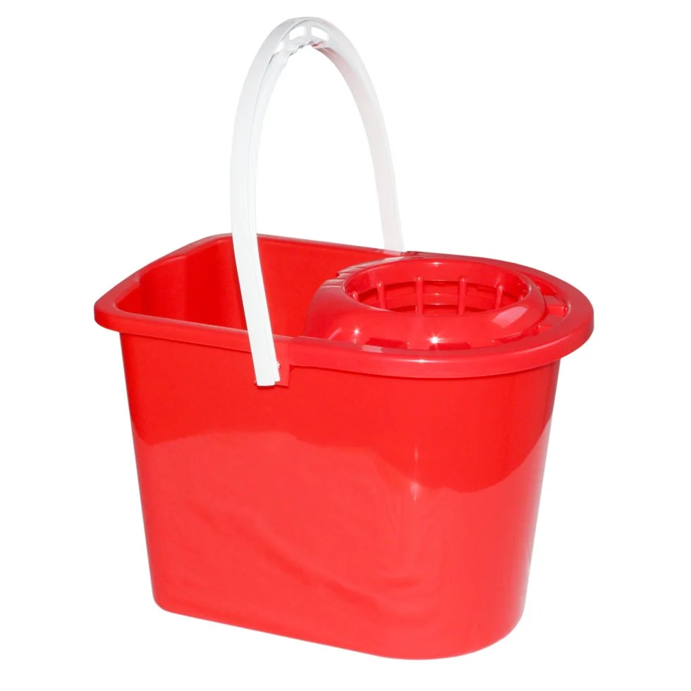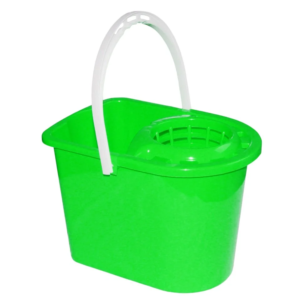 Ведро с отжимом используется для мытья полов при использовании веревочных и ленточных мопов. Имеет прямоугольную форму. Благодаря сливному носику слив воды производится аккуратно, без разбрызгивания. Специальное приспособление-воронка для механического отжима позволяет убрать лишнюю воду с мопа или тряпки, не намочив руки.