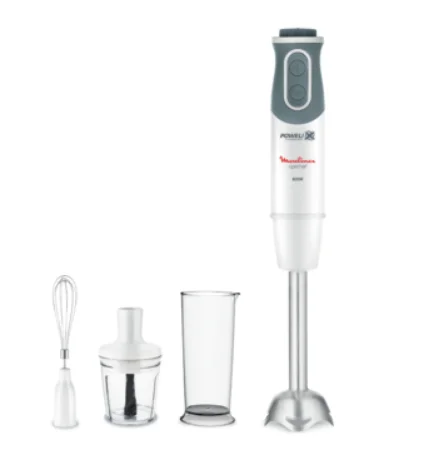 Насладитесь процессом и идеальным результатом с погружным домашним блендером от Moulinex. Специальный дизайн насадки блендера и форма лезвий обеспечат невероятно легкую работу с прибором, в то время как практичная защита от брызг сделает процесс приготовления более комфортным. Полностью контролируйте процесс приготовления с помощью высококачественного мотора мощностью 800 Вт и 10 скоростных режимов, которые можно переключать, не прерывая легкое и интуитивно понятное управление прибором. Также блендер оснащен нескользящей ручкой и съемными частями, которые можно мыть в посудомоечное машине. В комплект входят мерный стаканчик объемом 800 мл, измельчитель объемом 500 мл для легкой и удобной нарезки различных ингредиентов, а также венчик для блендера.