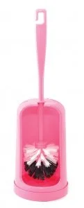 Комплект «Люкс» представлен туалетным ершом и подставкой-держателем. Практичный и оригинальный аксессуар для чистки унитаза. Имеет стильный дизайн и приятный розовый оттенок. Ручка ерша оснащена специальным выступом, с помощью которого изделие крепится на подставку. Также на ней имеется крючок. Таким образом, ерш можно хранить, подвесив его на специальный рейлинг. Подставка-держатель эргономичной куполообразной формы имеет широкий вырез на передней части. Это позволяет беспрепятственно брать и возвращать ерш на место.