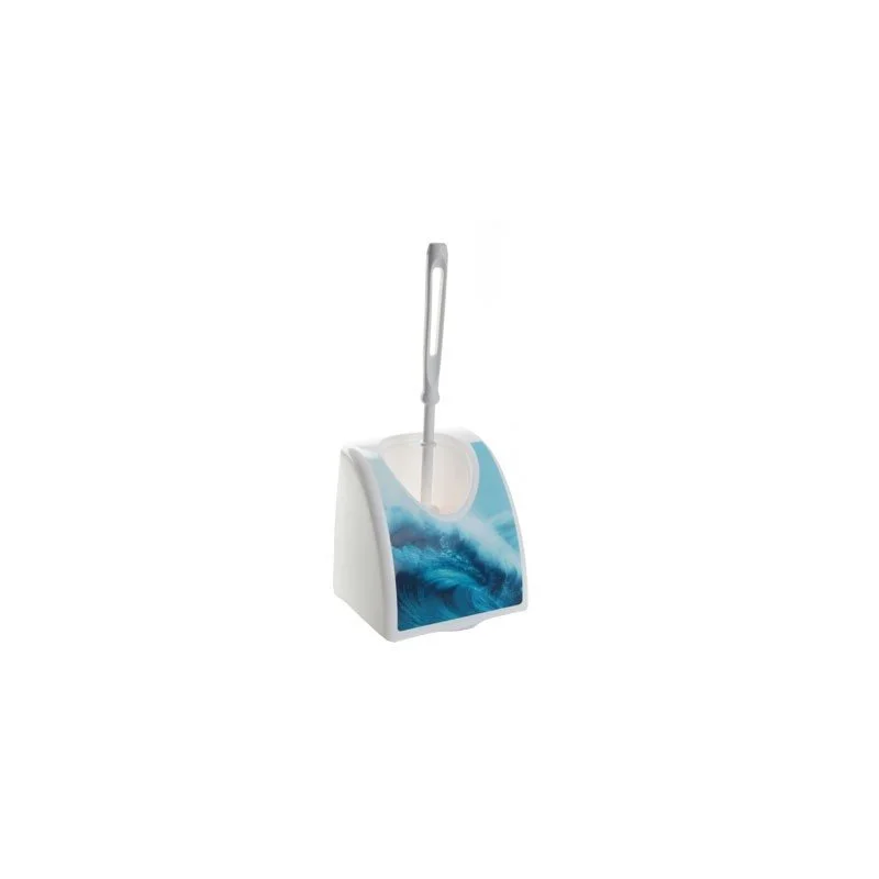 Универсальный ерш для чистки унитаза. Представляет собой конструкцию из непосредственно рукояти со щеткой и подстаканника. Цвет изделия — белый. Подстаканник декорирован наклейкой с экзотическим пейзажем.