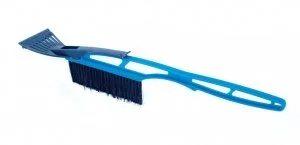 На конце щетки прикреплен скребок. Он позволяет счищать подсохшую грязь, тонкую наледь с гладкой поверхности автомобильных стекол, с капота и фар. Жесткий пластик имеет заостренный край, который легко и быстро удаляет даже плотные загрязнения и при этом не деформируется.