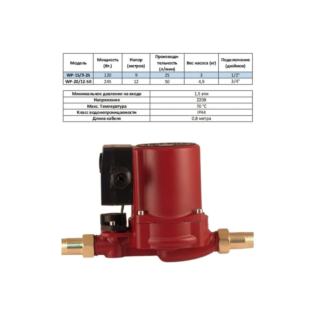 Насос повышающий давл. с автоматическим включением JEMIX WP-15/9-25 AUTO,. МОКРЫЙ РОТОР Мощн. 120 Вт. Макс. напор 9 м. Произв. 25 л/мин.
