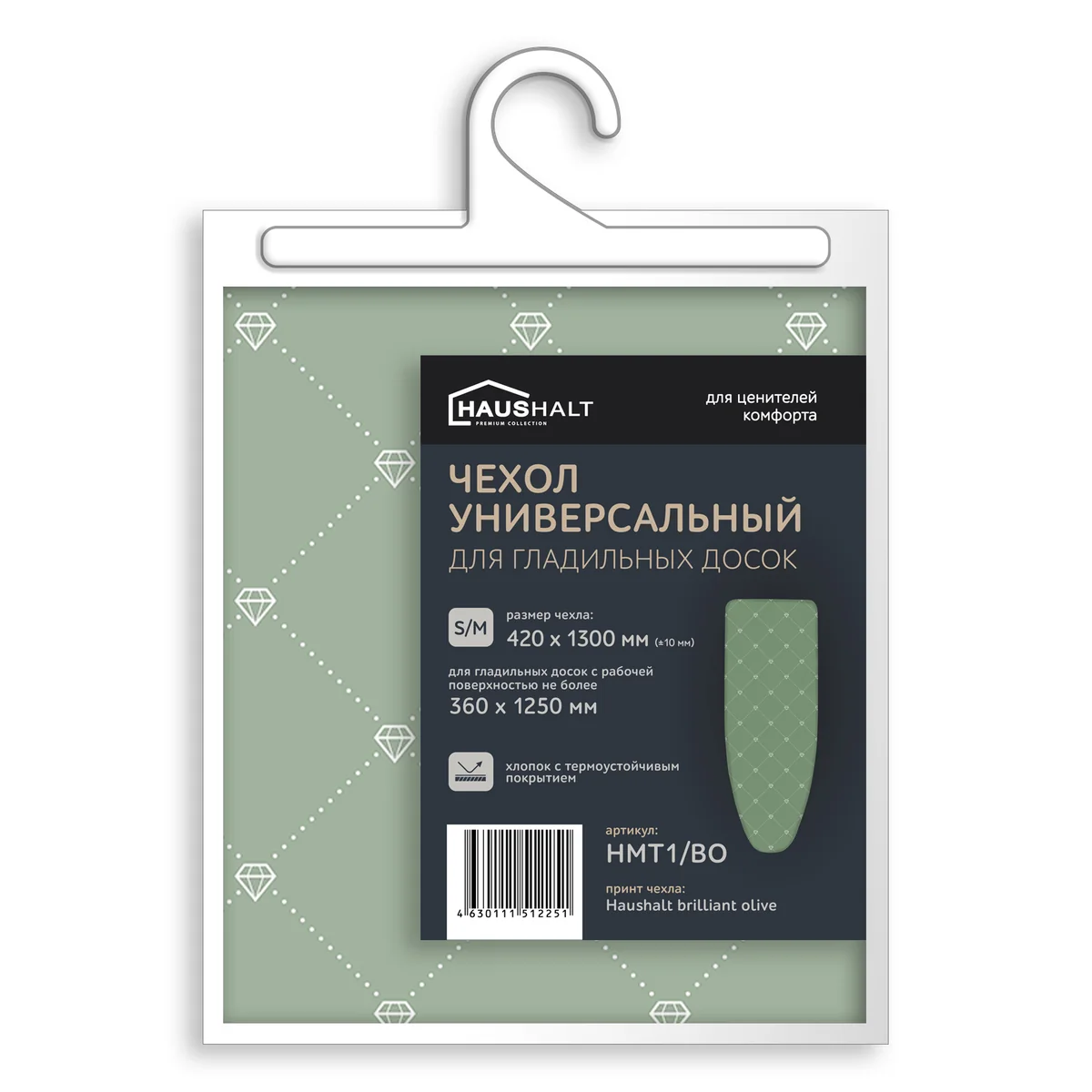Чехол универсальный с термостойким покрытием Haushalt brilliant olive (1300х420) HMT1/ВО