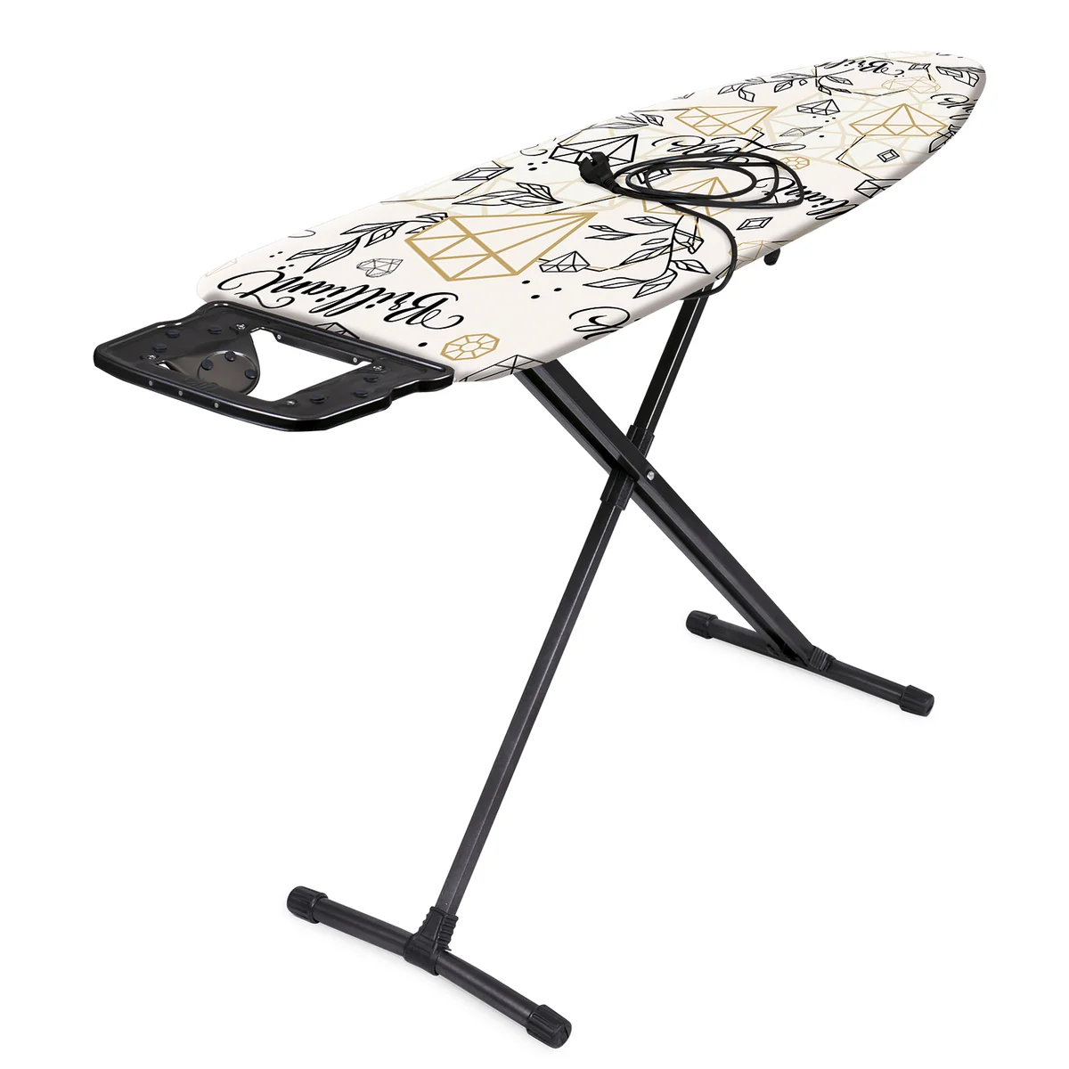 Гладильная доска с электросоединителем и подставкой под утюг, регулируемая по высоте.