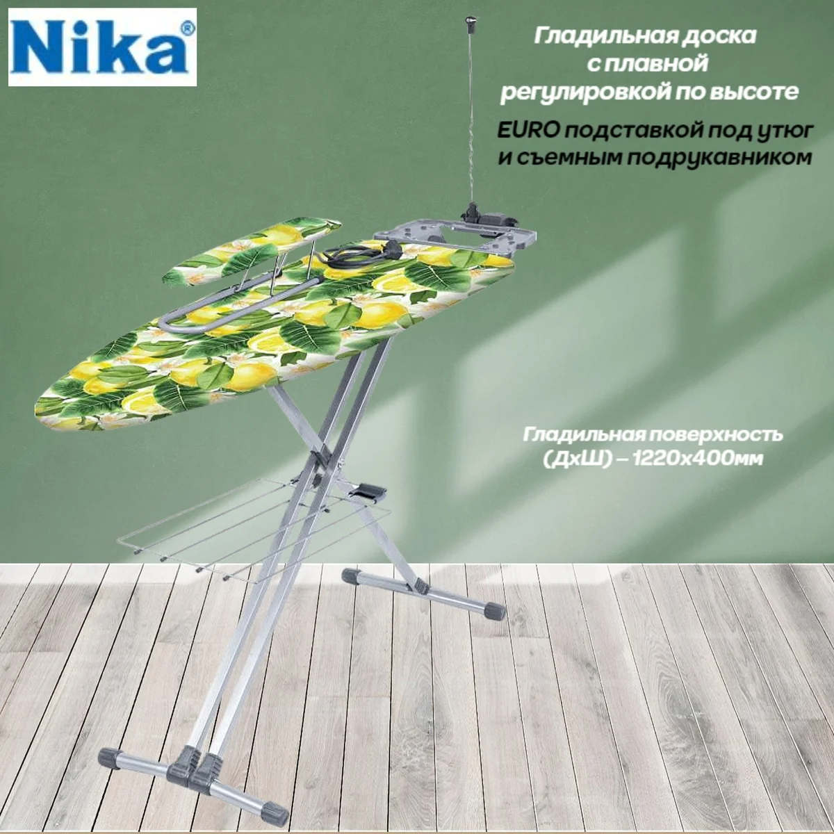 Доска гладильная НИКА 9 Н9/2 тропические листья (1220 х 400), Материал основы: метал лист