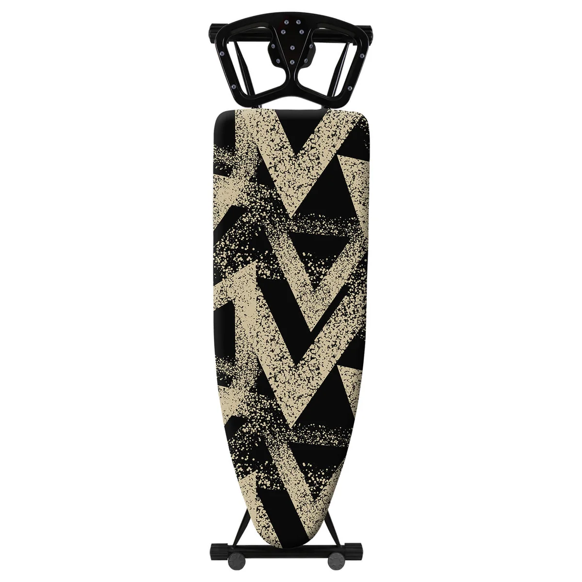 Широкая гладильная доска с электросоединителем и эргономичной подставкой под утюг для правшей и левшей. Плавная регулировка по высоте. Колеса на опорах для удобного перемещения в сложенном виде.