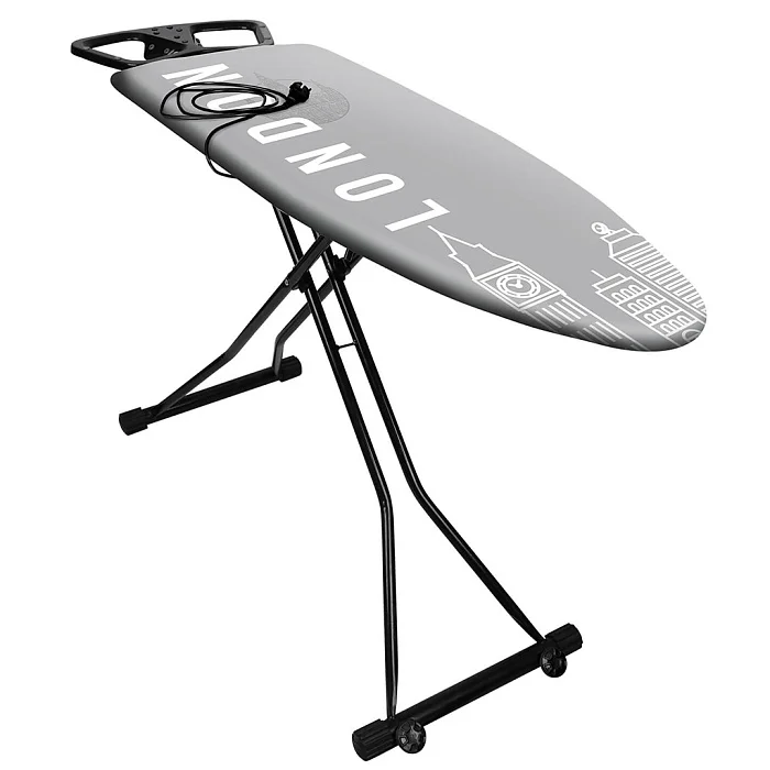 - Гладильная доска с плавной регулировкой по высоте, подставкой под утюг и колесами на опоре