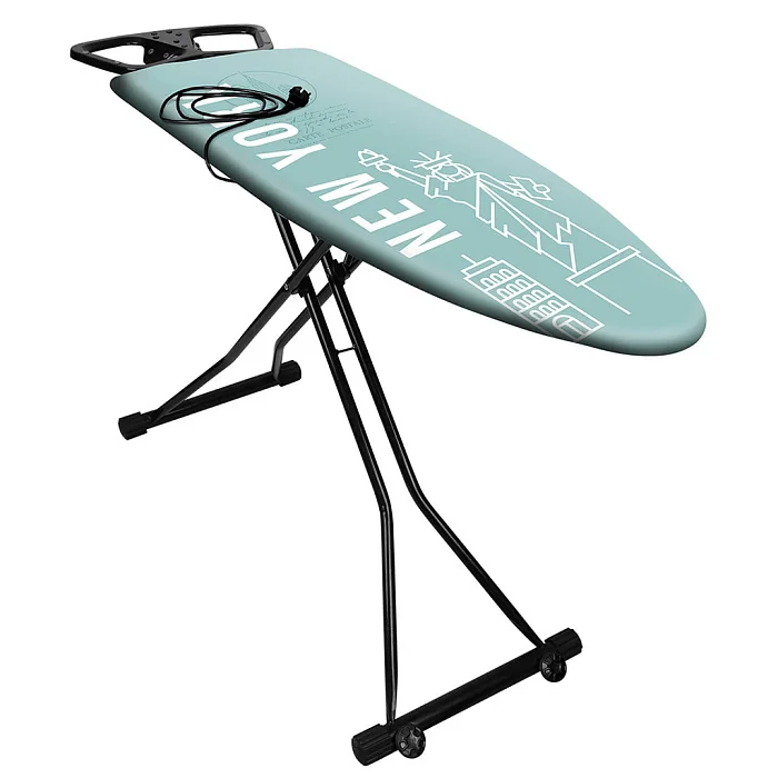 - Гладильная доска с плавной регулировкой по высоте, подставкой под утюг и колесами на опоре