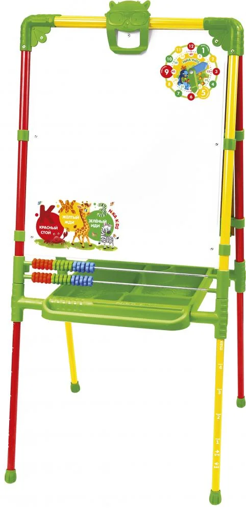 - в комплект входит набор для творчества в картонном коробе: для меловой поверхности – цветные мелки; для магнитной поверхности – русская азбука, цифры, знаки препинания, мозаика