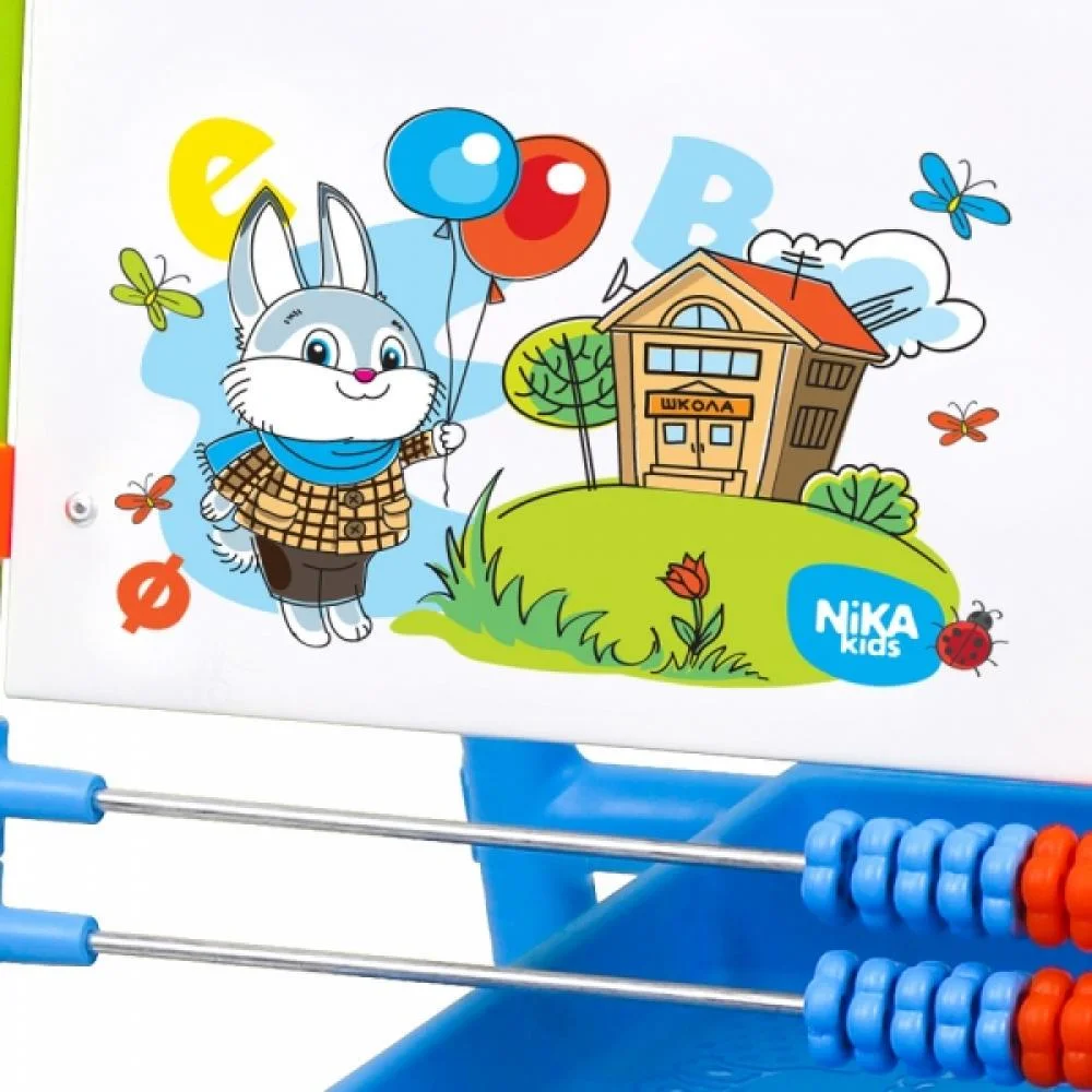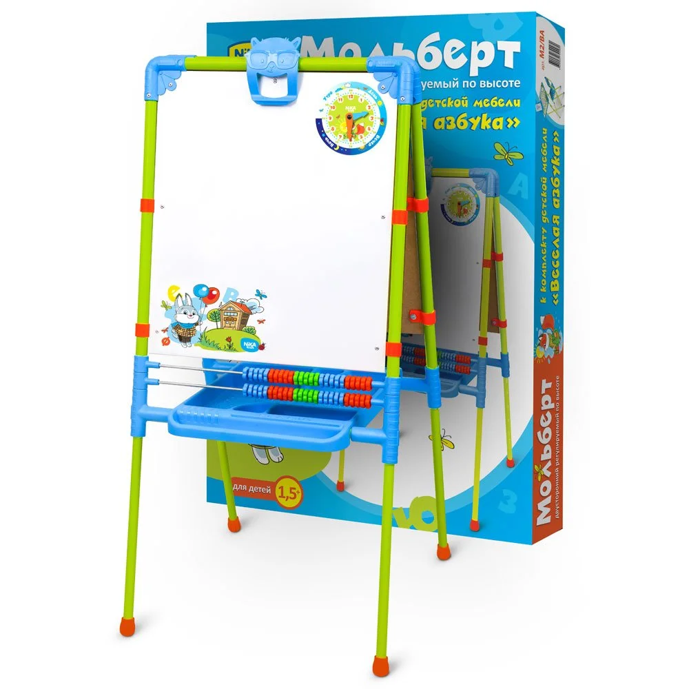 - в комплект входит набор для творчества: для меловой поверхности – цветные мелки; для магнитной поверхности – русская азбука, цифры, знаки препинания