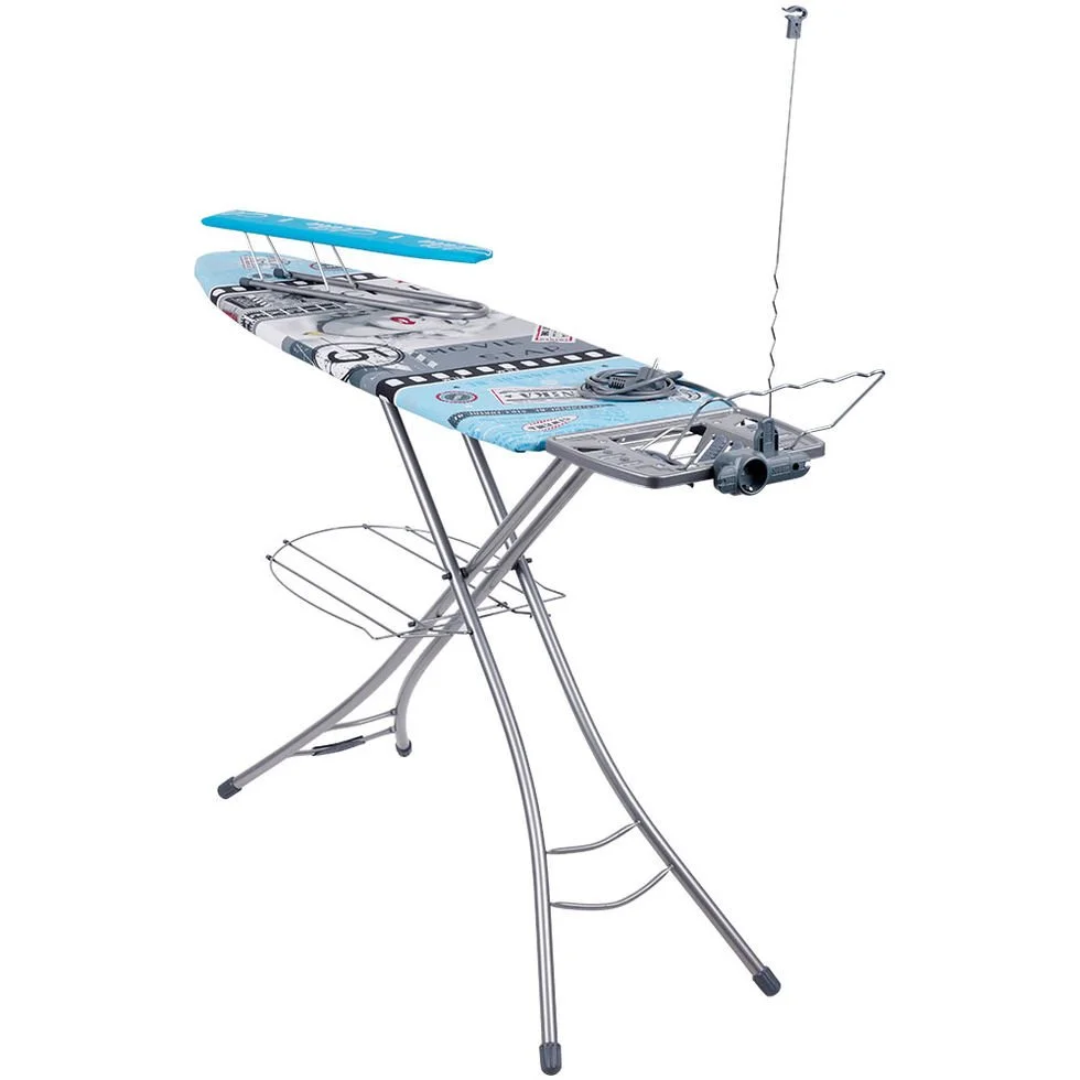 - • Гладильный стол из металлического перфорированного листа для свободного прохождения пара.