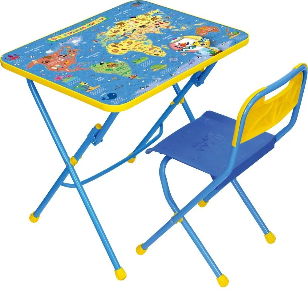 Комплект складной. Подходит для кормления, игр и обучения. Поверхность столешницы ламинированная с нанесением ярких познавательных рисунков. На поверхности стола можно рисовать маркером на водной основе.