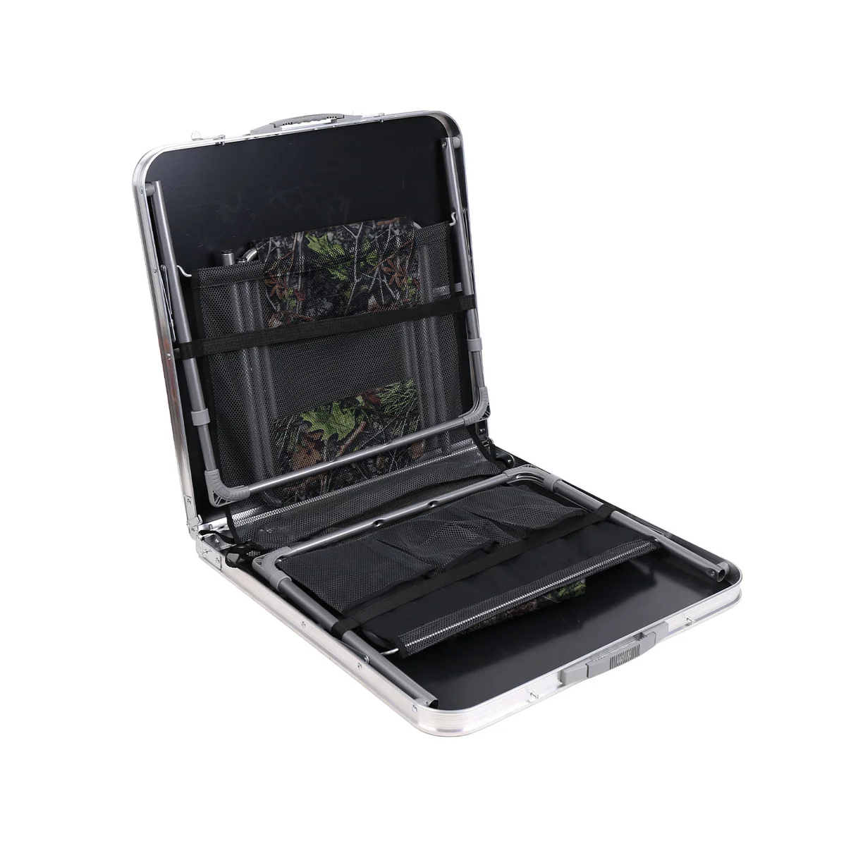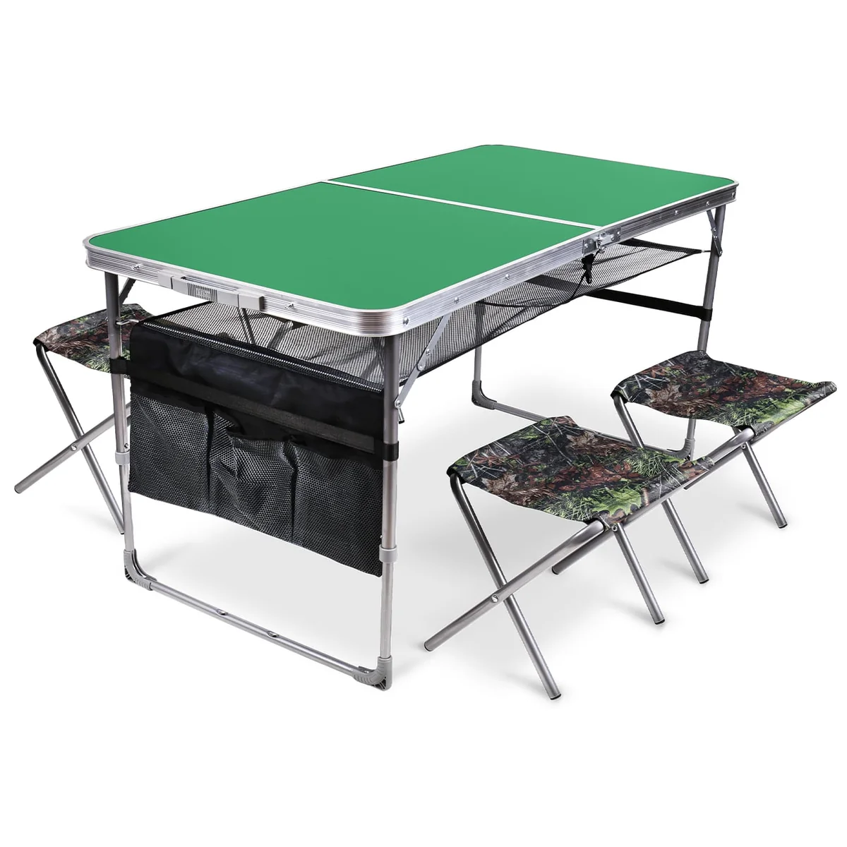 Комплект складной походной мебели из стола и 4 стульев. Стулья компактно укладываются в стол, который складывается в удобный кейс с ручкой для переноски и хранения.