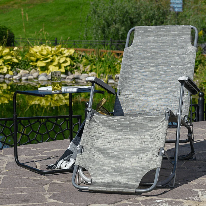 Столик садовый приставной - отличное решение для комфортного отдыха на природе. Можно приставить к шезлонгу, креслу или использовать отдельно.