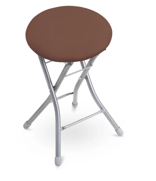 Складной табурет на четырёх опорах с мягким сиденьем из винилискожи. Легкое и простое складывание, компактное хранение.