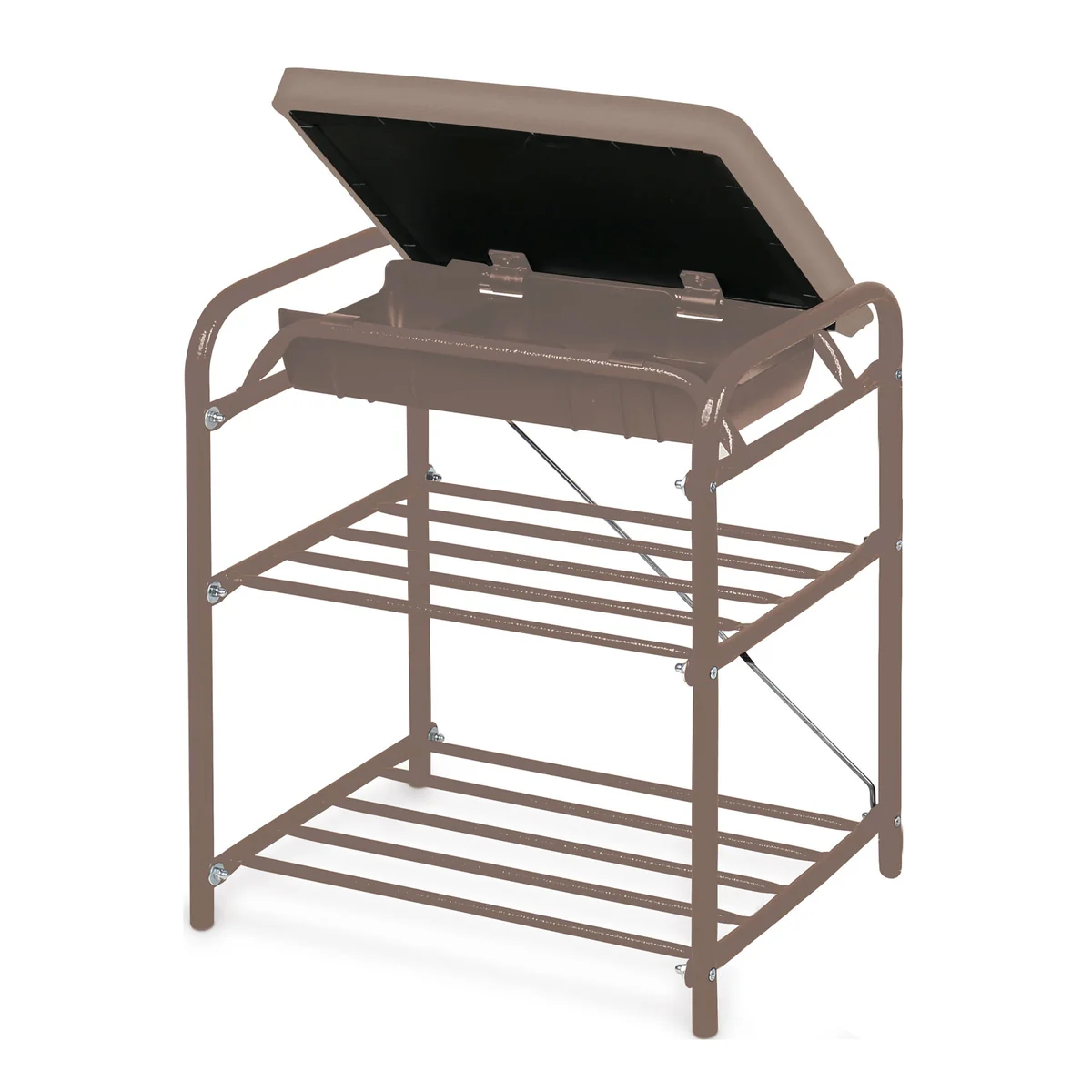 Банкетка с мягким сиденьем и двумя полками для обуви БП1-1/К коричневый/коричневый