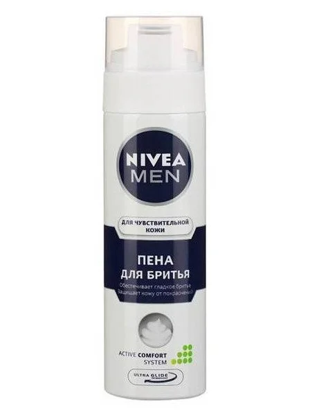 Формула пены с экстрактом ромашки и витамином Е обладает нейтральным запахом и обеспечивает ультрагладкое бритье. Не содержит спирта. Уникальная серия средств для чувствительной кожи от NIVEA MEN разработана специально для мужчин, чья кожа склонна к раздражению. Благодаря натуральной ромашке продукты серии для чувствительной кожи успокаивают и защищают твою кожу. Дерматологически протестировано. Для мужчин с чувствительной кожей.