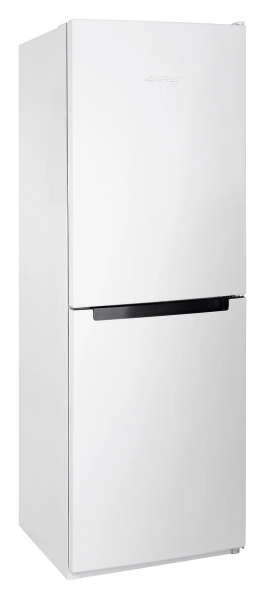 Двухкамерный отдельностоящий холодильник NORDFROST NRB 151 W с нижним расположением морозильной камеры имеет общий объем 285 л.