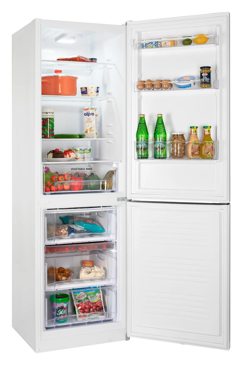 Двухкамерный отдельностоящий холодильник NORDFROST NRB 152 W с нижним расположением морозильной камеры имеет общий объем 320 л.