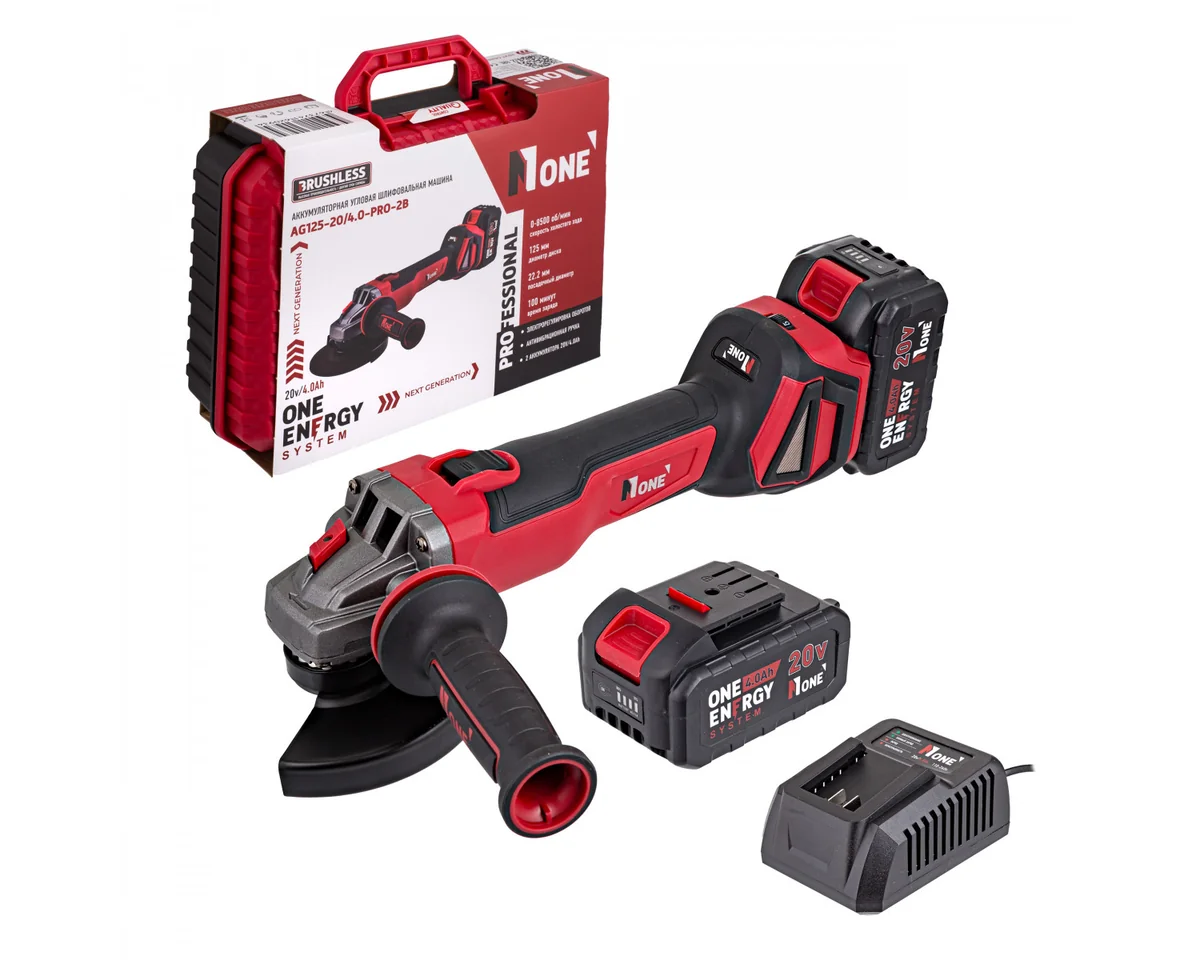 Аккумуляторная УШМ бесщет. None AG125-20/3.0-PRO (125мм,плавный пуск,элект.рег.обор.,2 аккум-3,0Ач) Number One