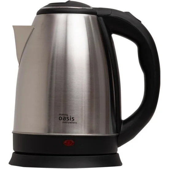 Электрочайник Oasis K-10NS объёмом 1,8 литра оснащён вращающейся на 360° подставкой, 0,75-метровым кабелем для подключения к сети и удобной термозащитной ручкой.