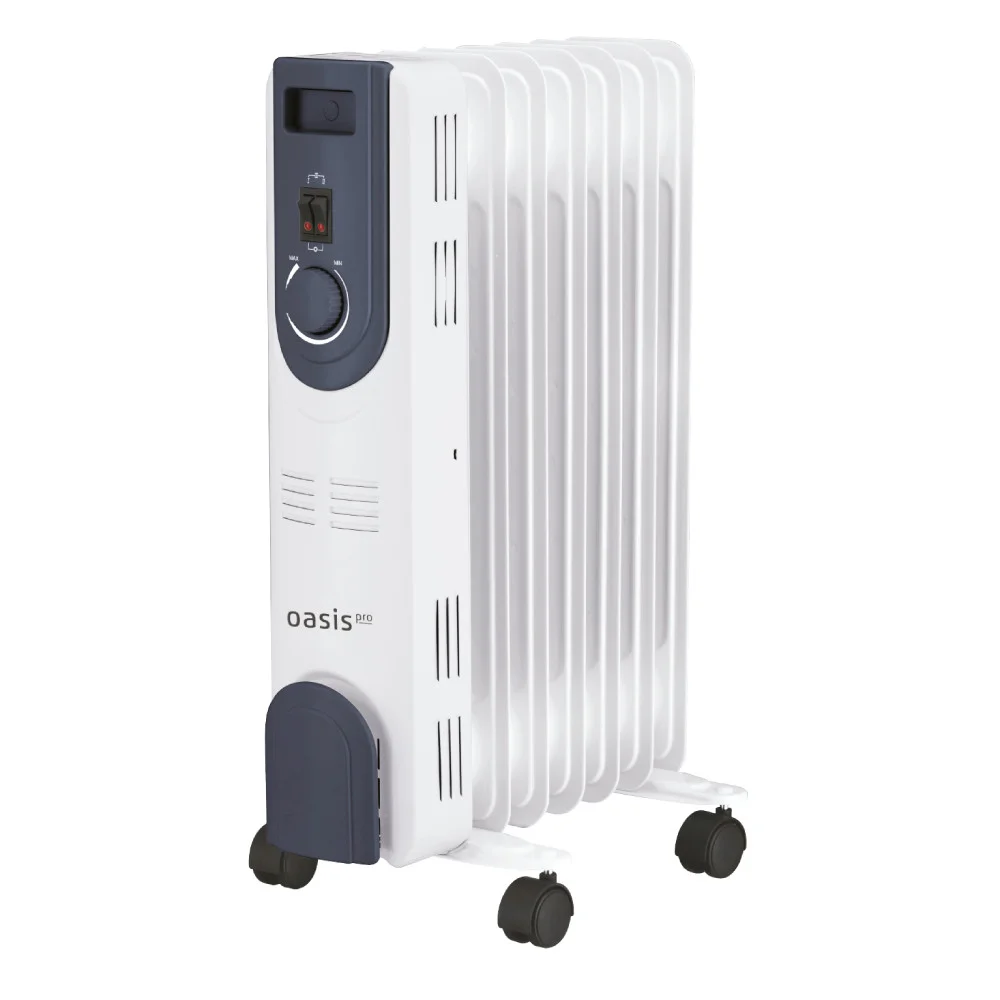 Масляный радиатор Oasis Pro OT-15 — электрический отопительный прибор для обогрева помещений. Внутри устройства находится минеральное масло, которое нагревается, а затем передаёт тепло через корпус радиатора. Это обеспечивает мягкий и равномерный прогрев воздуха в комнате.