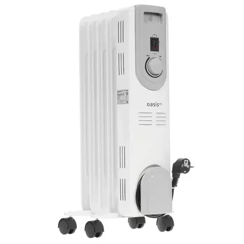 Масляный обогреватель Оasis Pro OS-10 оснащен 3 ступенями регулировки температурного режима. Встроенный механический термостат автоматически поддерживает заданную интенсивность обогрева, а световой индикатор помогает контролировать состояние. На боковой стороне предусмотрены ручка и отсек для хранения сетевого кабеля, которые выполнены из термостойкого пластика.