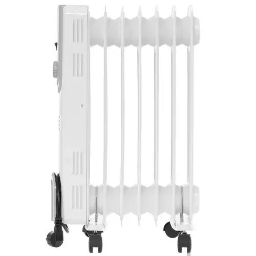 Управление режимами мощности и интенсивностью обогрева выполняется с помощью механических элементов со световыми индикаторами. Ручка и опоры с колесиками гарантируют удобное перемещение масляного обогревателя Оasis Pro OS-15 в нужное место. Для хранения сетевого шнура есть специальный отсек.