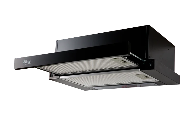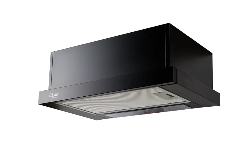 В последнее время все большим спросом начинают пользоваться встраиваемые вытяжки. Они довольно компактны и монтируются в специальный навесной шкаф над плитой. При этом «на виду» остаётся лишь узкая панель, которая выдвигается вперёд при работе вытяжки. Это нужно для более полного охвата поверхности плиты, чтобы грязный воздух не поднимался к потолку.
