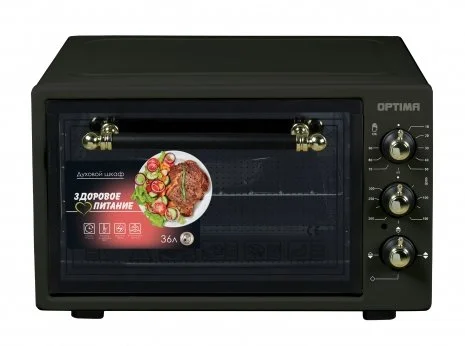 Духовка электрическая OPTIMA OF-36BLR станет настоящим украшением любой кухни с ее в меру броским и элегантным дизайном в ретро стиле. Внутренний объем камеры составляет 36 литров, а мощность 1300Вт. Два нагревательных элемента (верхний и нижний) обеспечивают быстрый и равномерный нагрев от 50 до 300 градусов. Данная модель оснащена таймером с функцией автоотключения через 90 минут, что несомненно добавляет удобства в использовании данной модели. Качественная теплоизоляция корпуса обеспечивает безопасность и исключает вероятность ожога при прикосновении. Встроенная лампа улучшает обзор и позволяет готовить с комфортом. В комплект входят решетка, круглый и квадратный противни, которые можно одновременно разместить на двух разных уровнях для приготовления блюд.