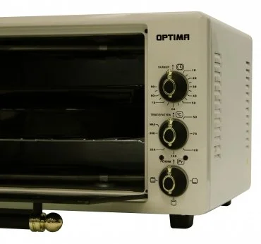 Духовка электрическая OPTIMA OF-36BR станет настоящим украшением любой кухни с ее в меру броским и элегантным дизайном в ретро стиле. Внутренний объем камеры составляет 36 литров, а мощность 1300Вт. Два нагревательных элемента (верхний и нижний) обеспечивают быстрый и равномерный нагрев от 50 до 300 градусов. Данная модель оснащена таймером с функцией автоотключения через 90 минут, что несомненно добавляет удобства в использовании данной модели. Качественная теплоизоляция корпуса обеспечивает безопасность и исключает вероятность ожога при прикосновении. Встроенная лампа улучшает обзор и позволяет готовить с комфортом. В комплект входят решетка, круглый и квадратный противни, которые можно одновременно разместить на двух разных уровнях для приготовления блюд.