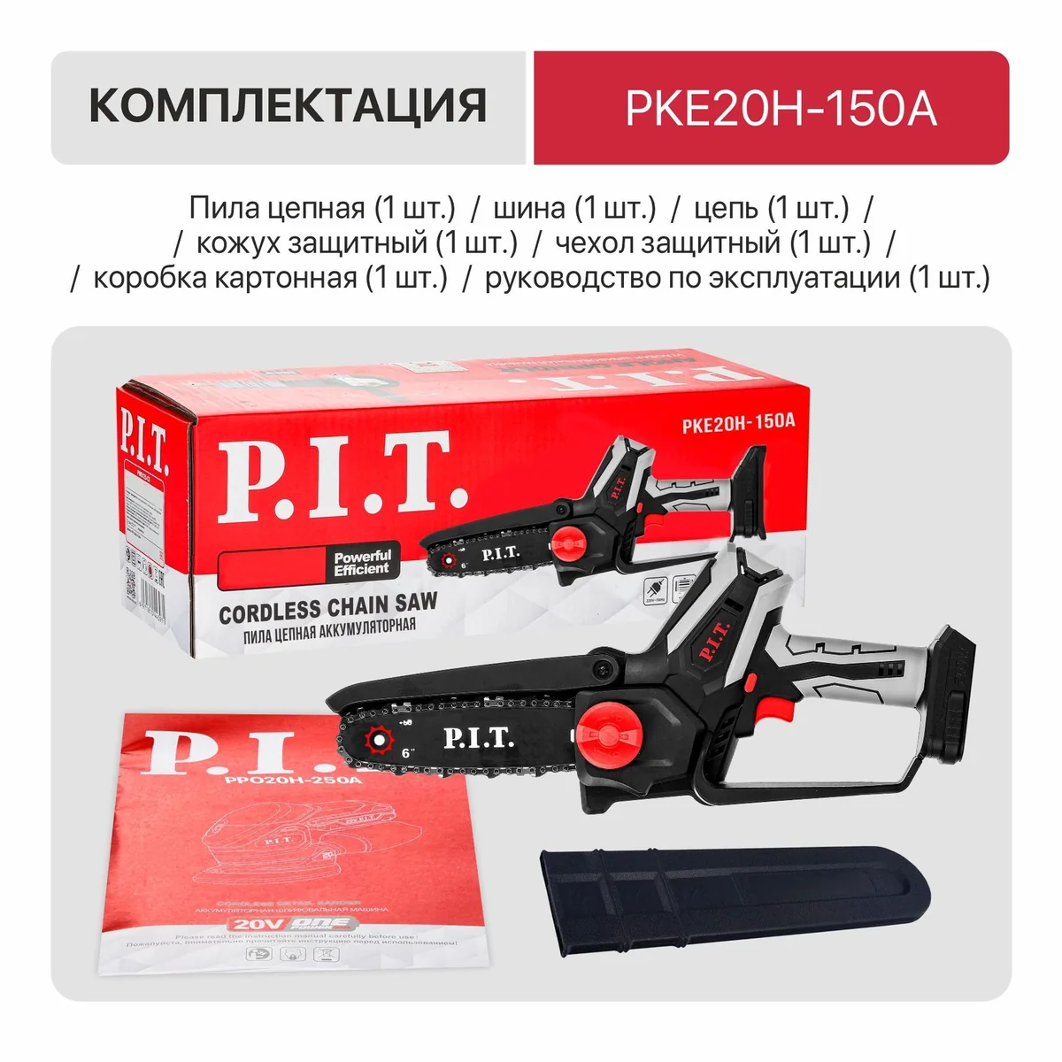 Аккумуляторная цепная пила P.I.T. PKE20H-150A SOLO (без АКБ и ЗУ)