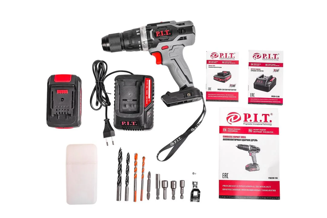 Дрель ударная аккум. P.I.T. PSB20H-13A/1 (20В, 48Нм, металл патрон 13мм, 2ск, 1акб 2Ач, ЗУ, кейс)