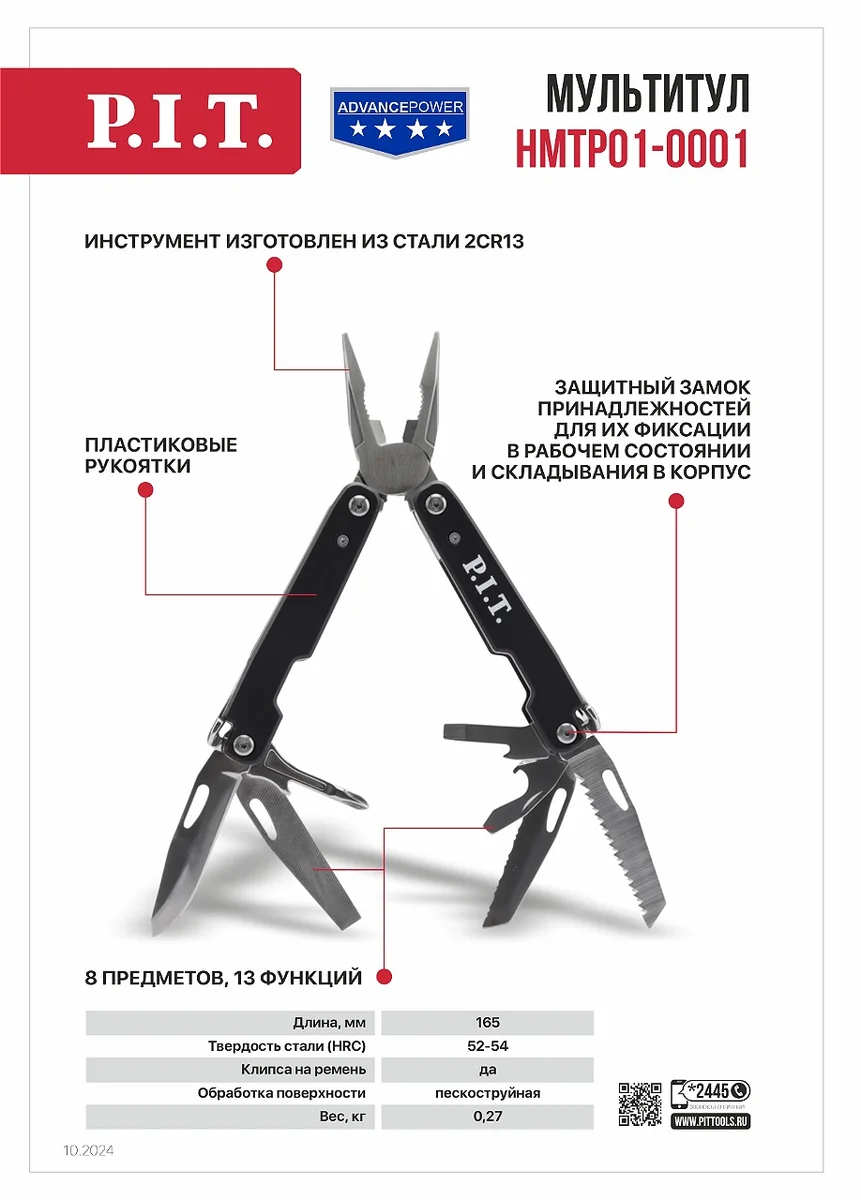 Мультитул HMTP01-0001 имеет широкий спектр применения - многофункциональные инструменты в одном корпусе, которые отвечают различным потребностям как в повседневной жизни, так и на отдыхе на природе.